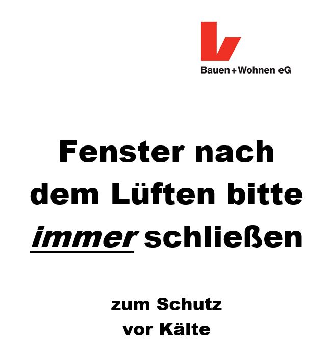 Die Temperaturen fallen in den einstelligen Bereich bzw. unter 0 Grad. Damit die Treppenhäuser nicht auskühlen, die Fenster bitte nach dem Lüften schließen.